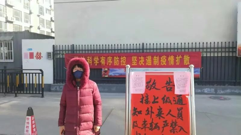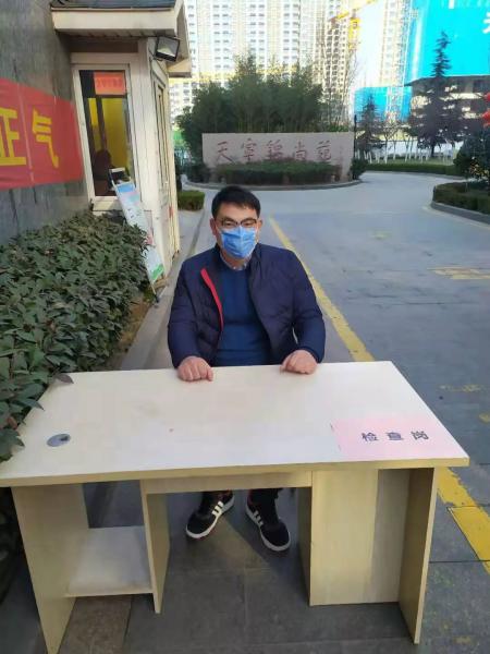 盟員丁兆華在機(jī)電工程學(xué)校家屬院門口輪崗值班,做好人員出入登記和勸阻工作