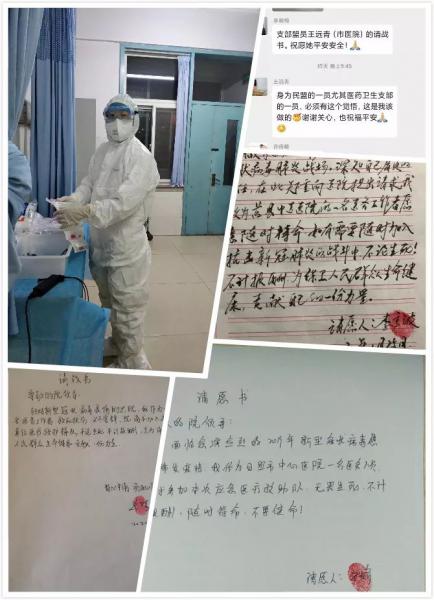 民盟東港區(qū)支部盟員、日照市中心醫(yī)院婦科護(hù)士長安靜,民盟莒縣支部盟員、莒縣中醫(yī)醫(yī)院主治醫(yī)師李京波,民盟醫(yī)藥衛(wèi)生支部盟員、日照市人民醫(yī)院主治醫(yī)師王遠(yuǎn)青,民盟嵐山區(qū)支部組織委員、嵐山區(qū)婦幼保健院院感辦主任單琦主動請纓,并在請戰(zhàn)書上簽字摁印。