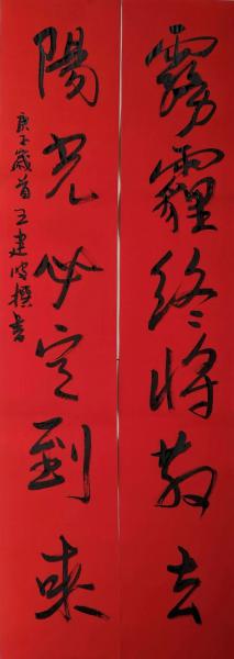威海民盟書畫院常務理事、觀海樓美術館創(chuàng)始人王建波創(chuàng)作書法作品《霧霾終將散去 陽光必定到來》,提振抗疫勝利的信心。