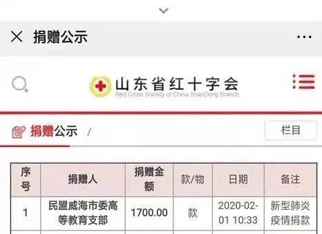 29日晚高教支部全體盟員積極繳納特殊盟費。2月1日上午,支部負責同志將1700元整捐贈給山東省紅十字會。