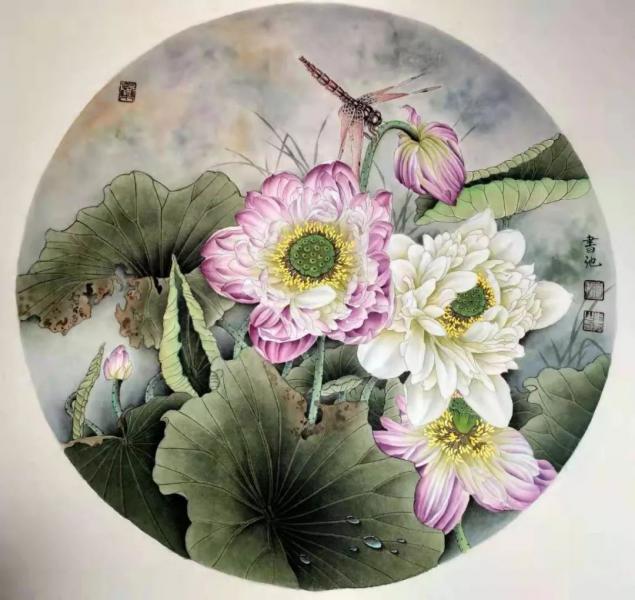 威海民盟書畫院理事、經區(qū)美協副主席劉存芳創(chuàng)作《荷》。