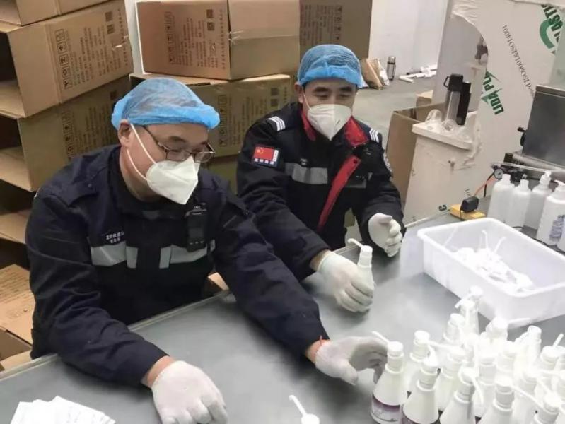 盟員趙世利帶領(lǐng)藍(lán)獅救援隊(duì)支援消毒產(chǎn)品生產(chǎn)