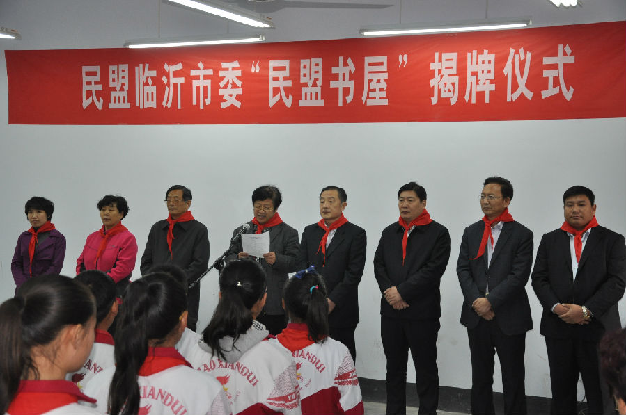 4月16日,民盟臨沂市委分別赴沂水縣高莊鎮(zhèn)中心小學、郯城縣郯城街道辦事處三井小學捐建了兩所“民盟書屋”。山東省政協(xié)副秘書長、民盟山東省委專職副主委董利忠,民盟青島市委專職副主委江玉民,臨沂市政協(xié)副主席錢迎偉,臨沂市政協(xié)副主席、民盟臨沂市委主委劉繼雙,民盟山東省委宣傳部負責人張麗君,中共臨沂市委統(tǒng)戰(zhàn)部副調(diào)研員許金濤,民盟臨沂市委副主委孟凡明等領(lǐng)導出席活動并為“民盟書屋”揭牌。郯城縣人民政府縣長劉連棟、縣政協(xié)主席解廣琴、沂水縣政協(xié)副主席牛嗣紅等陪同活動。