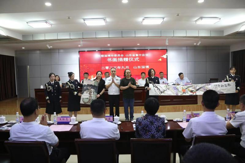 民盟淄博市委會(huì)向山東省魯中監(jiān)獄捐贈(zèng)書(shū)畫作品。