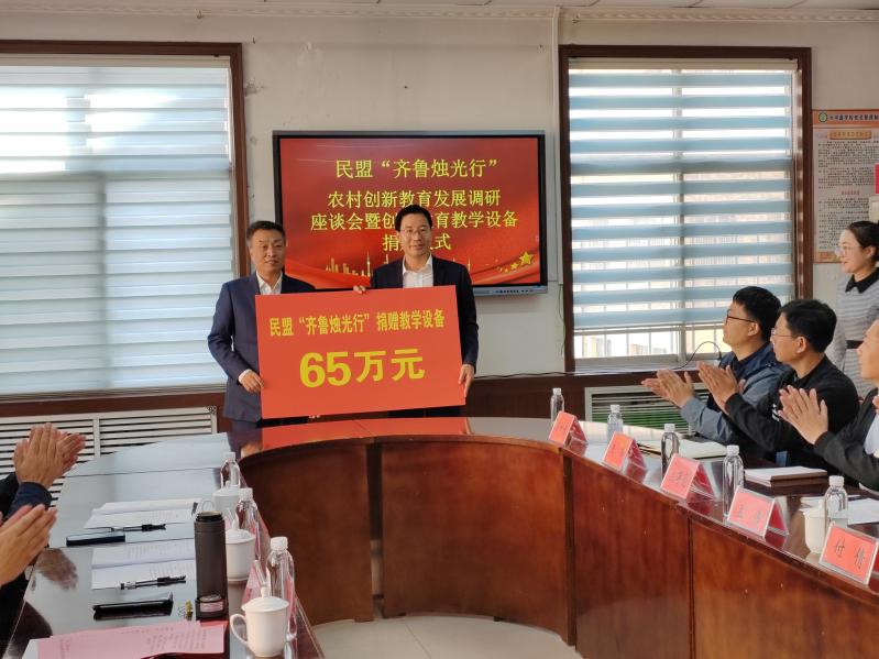 捐贈(zèng)儀式上,民盟省委會(huì)向沂源縣捐贈(zèng)價(jià)值65萬(wàn)元的教學(xué)設(shè)備。