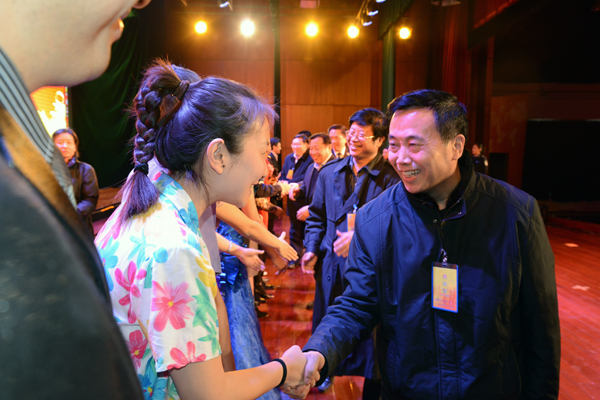 演出結(jié)束,民盟省委、省司法廳和監(jiān)獄管理局的領(lǐng)導(dǎo)上臺(tái)同演員一一握手,向他們的無(wú)私奉獻(xiàn)和精彩演出表示感謝和祝賀。