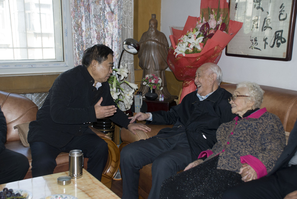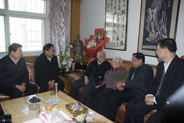 11月17日是孔令仁先生的九十歲壽辰。上午,中共山東省委常委、統(tǒng)戰(zhàn)部部長顏世元,常務(wù)副部長孫傳宏、副部長李法信,山東省人大常委會(huì)副主任、民盟省委主委溫孚江,副主委儀平策、董利忠,秘書長張繼平,中共山東大學(xué)黨委常務(wù)副書記李建軍、統(tǒng)戰(zhàn)部部長戴智章等帶著鮮花和生日蛋糕來到孔令仁先生家中,祝賀孔令仁先生九十壽辰。