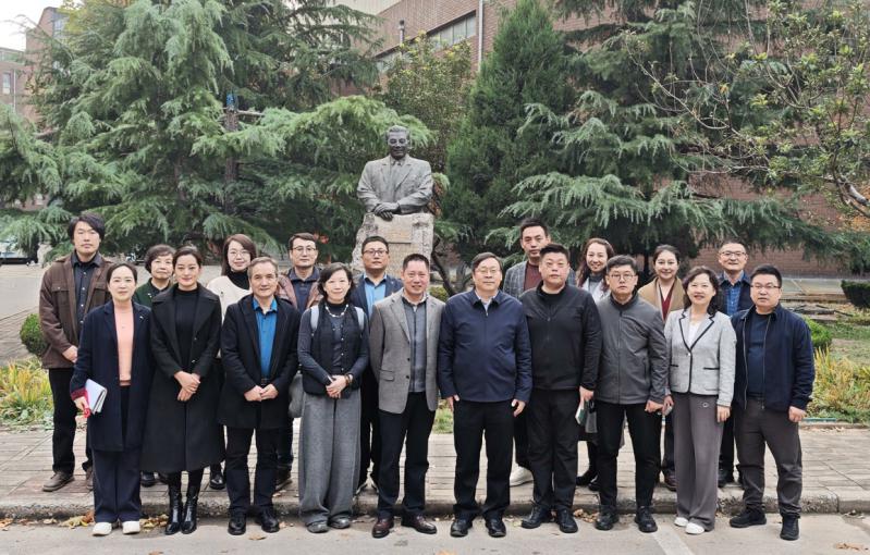 劉加釗一行先后參觀了潘魯生民藝館、郭志光美術(shù)館、山東工藝美術(shù)學(xué)院手工藝實驗室,瞻仰了民盟省委會原主委、山東工藝美術(shù)學(xué)院原副院長朱銘同志雕像,并進(jìn)行了交流座談。