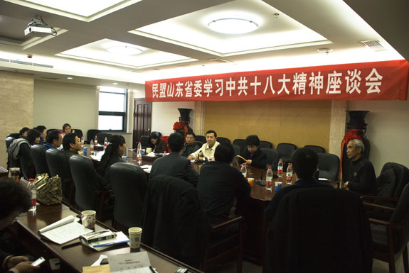 2012年11月16日,民盟山東省委在機關(guān)會議室召開學習中共十八大精神座談會,民盟省委副主委儀平策、侯桂華,秘書長張繼平出席會議。民盟省委學習委員會成員、民盟省直支部主委以及民盟省委全體機關(guān)人員參加了會議。會議由儀平策、侯桂華副主委共同主持。