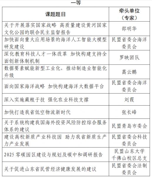 民盟山東省委會(huì)2025年度參政議政調(diào)研課題評(píng)選結(jié)果揭曉