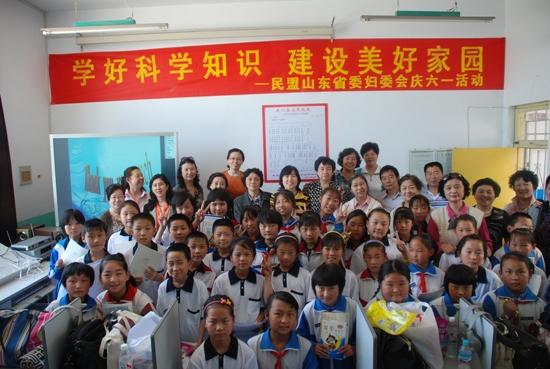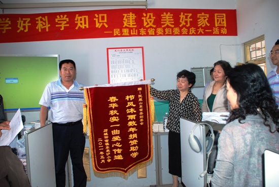 侯桂華主任在發(fā)言中熱情洋溢的說:今天我們和東泉瀘小學的同學歡聚在一起,用愉快的心情,用優(yōu)美的歌聲,共同慶祝大家的節(jié)日。從2003年的“六一”兒童節(jié),民盟省委婦委會到仲宮鎮(zhèn)鳳凰嶺小學實施“春蕾計劃”活動開始,與東泉瀘小學結成幫扶學校,至今已經八年了。八年以來,民盟省委婦委會每年與學校都開展有一個主題內容的幫扶活動,先后邀請山區(qū)師生到濟南參觀山東省科技館,擴大孩子們的知識視野和對城市的認知;在東泉瀘小學建立了“民盟省委婦委會圖書站”,幾年來為學校捐獻了價值約1.8萬元的圖書,其中有很大一部分是