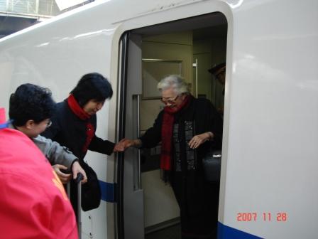 民盟中央名譽(yù)副主席孔令仁走下火車