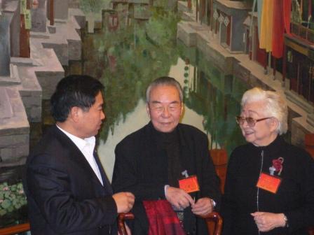 民盟中央原副主席孔令仁、吳修平、民盟山東省委主委溫孚江親切交談