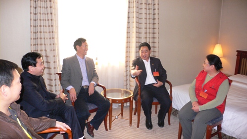 山東團(tuán)代表和新疆團(tuán)代表利用會議間隙暢談兩地盟務(wù)合作事宜