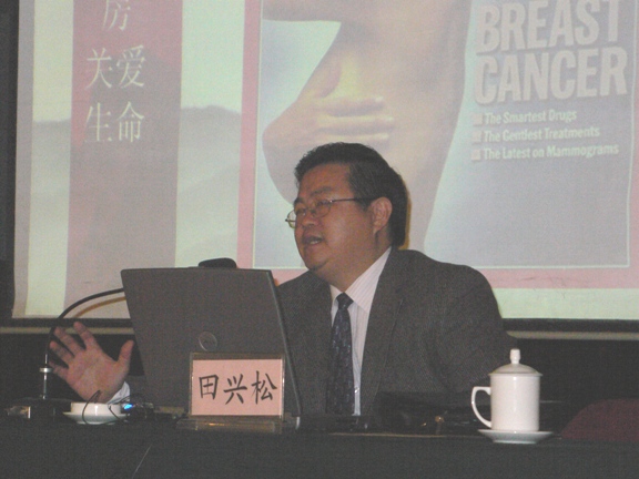 民盟山東省立醫(yī)院支部主委、省立醫(yī)院乳腺甲狀腺外科主任田興松教授為大家作了題為“關(guān)愛乳房·關(guān)愛生命----乳腺癌的早期診斷”專題講座。田教授詳盡地介紹了乳腺癌的特點和各種早期診斷方法,報告圖文并茂,生動風(fēng)趣,得到了大家的一致好評。講座結(jié)束后,田教授還為部分女盟員進行了義診。