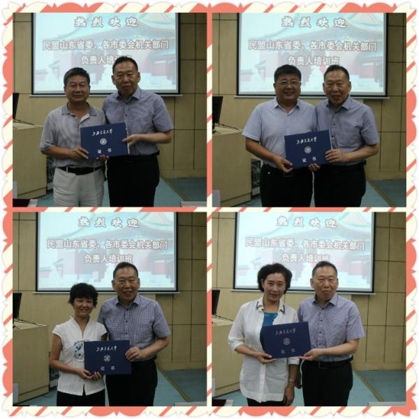 民盟山東省委主委王修林向學員代表頒發(fā)結業(yè)證書