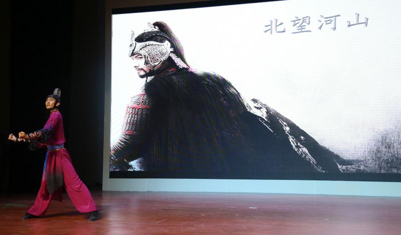 來自山東歌舞劇院的青年舞蹈家、盟員康群用精彩的肢體語言演出了以岳飛抗金為背景、富有感染力的獨舞——《北望河山》,贏得了觀眾陣陣掌聲。