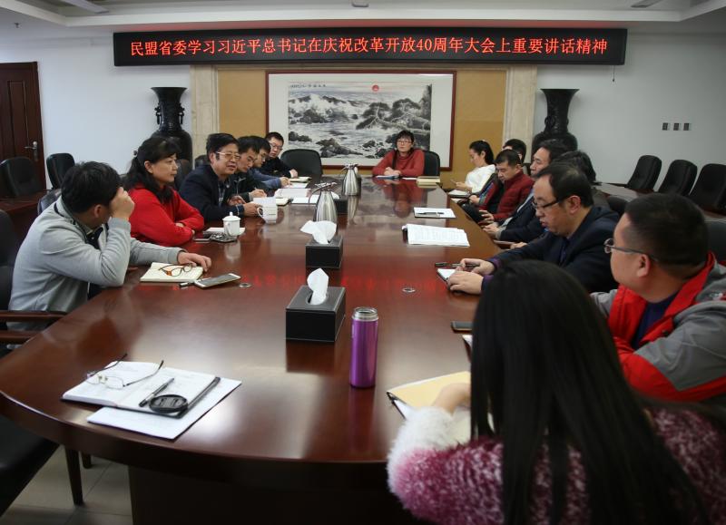 結(jié)合民盟中央文件指示精神和與會(huì)人員發(fā)言內(nèi)容,董利忠作了總結(jié)講話。他指出,習(xí)近平總書記的重要講話,站在政治和全局高度,全面總結(jié)了我國改革開放40年來取得的偉大成就和寶貴經(jīng)驗(yàn),鄭重宣誓了將改革開放進(jìn)行到底的堅(jiān)定決心,系統(tǒng)擘畫了推進(jìn)新時(shí)代改革開放的宏偉藍(lán)圖,是指導(dǎo)推進(jìn)新時(shí)代改革開放偉大事業(yè)的綱領(lǐng)性文獻(xiàn)。習(xí)近平總書記的重要講話總攬全局、繼往開來,是新時(shí)代改革開放的“定盤星”;內(nèi)涵豐富、振奮人心,是新時(shí)代改革開放的“宣言書”;擲地有聲、催人奮進(jìn),是新時(shí)代改革開放的“動(dòng)員令”;與時(shí)俱進(jìn)、引領(lǐng)復(fù)興,是新時(shí)代改革開放的“指南針”。我們要深入學(xué)習(xí)貫徹習(xí)近平總書記重要講話精神,切實(shí)轉(zhuǎn)化為堅(jiān)定的政治共識(shí)、強(qiáng)大的精神動(dòng)力、科學(xué)的思想方法、有力的工作舉措,不斷加強(qiáng)中國特色社會(huì)主義參政黨建設(shè),更加自覺地堅(jiān)持和完善我國新型政黨制度,為新時(shí)代繼續(xù)推進(jìn)改革開放和中國特色社會(huì)主義事業(yè)貢獻(xiàn)智慧和力量。