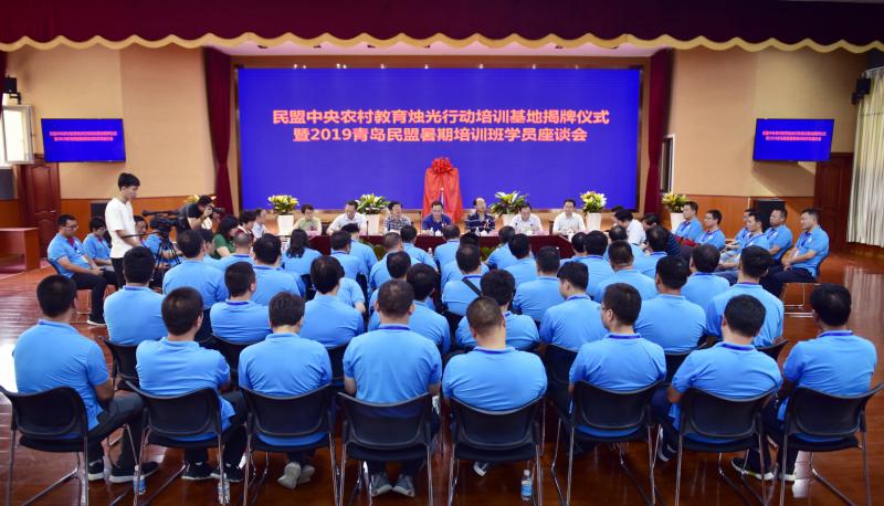 2019年8月21日,民盟中央“農(nóng)村教育燭光行動培訓基地”揭牌儀式暨座談會在青島國開教育集團舉行。