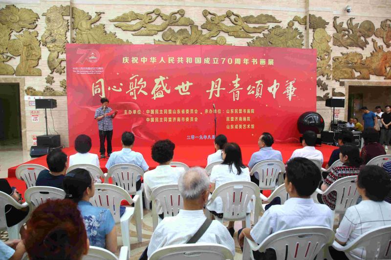 為慶祝中華人民共和國(guó)成立70周年、中國(guó)人民政治協(xié)商會(huì)議成立70周年、中國(guó)共產(chǎn)黨領(lǐng)導(dǎo)的多黨合作和政治協(xié)商制度確立70周年,8月28日上午,民盟山東省委暨民盟濟(jì)南市委聯(lián)合舉辦的“同心歌盛世,丹青頌中華——慶祝中華人民共和國(guó)成立70周年書畫展”活動(dòng)在山東省文化館開幕。