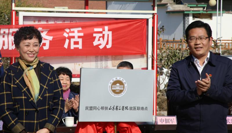 11月4日,民盟省委聯(lián)合山東藝術學院在沂源縣燕崖鎮(zhèn)上龍巷村舉行了“民盟同心幫扶基地”“山東藝術學院設計學院創(chuàng)新創(chuàng)業(yè)教學實踐基地”“民盟同心幫扶山東省立醫(yī)院就醫(yī)聯(lián)絡點”揭牌儀式,并同時舉行送醫(yī)送藥送物資活動。