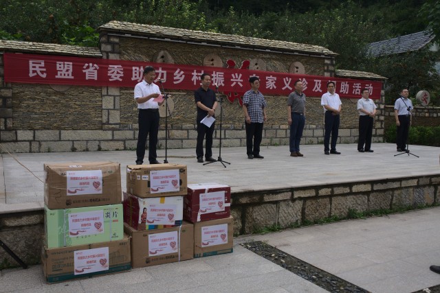 田興松副主委代表民盟省委講話。田興松表示,民盟省委了解到村民對(duì)于優(yōu)質(zhì)醫(yī)療衛(wèi)生服務(wù)和藥品的需求,組織醫(yī)藥衛(wèi)生界的專(zhuān)家盟員上門(mén)義診。企業(yè)家盟員們將通過(guò)產(chǎn)業(yè)幫扶的形式,繼續(xù)為村民提供支持和幫助。