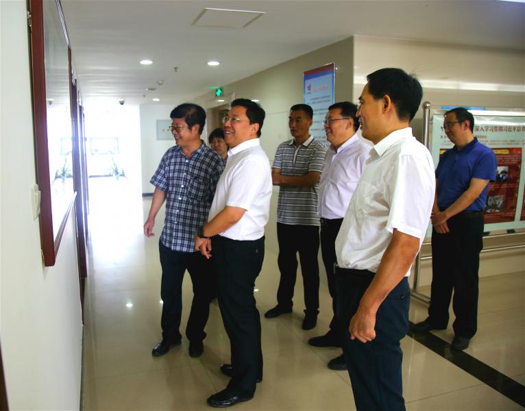 走訪調(diào)研中,李琥看望慰問(wèn)了機(jī)關(guān)干部,與他們親切握手,并不時(shí)詢問(wèn)機(jī)關(guān)干部相關(guān)工作情況。他在山東民盟賢達(dá)和機(jī)關(guān)辦公文化墻前駐足閱讀,董利忠介紹了民盟山東省委的歷史沿革、代表性人士情況、開(kāi)展的主要工作等。