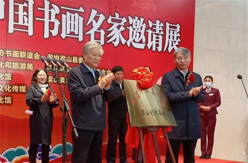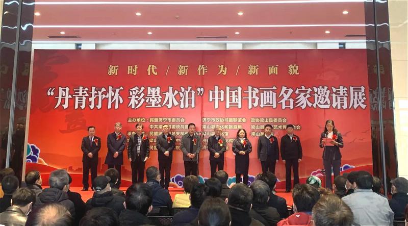 11月24日上午,全國(guó)人大常委會(huì)委員、民盟中央副主席、中國(guó)文聯(lián)副主席張平,全國(guó)人大常委會(huì)委員、民盟中央副主席龍莊偉為民盟中央美術(shù)院濟(jì)寧分院及梁山創(chuàng)作基地揭牌,并出席“丹青抒懷 彩墨水泊”中國(guó)書(shū)畫(huà)名家邀請(qǐng)展。山東省政協(xié)副主席、民盟山東省委主委王修林,民盟中央宣傳部部長(zhǎng)曲偉,民盟山東省委專(zhuān)職副主委董利忠,濟(jì)寧市政協(xié)副主席、民盟濟(jì)寧市委主委郭洪敏,中共梁山縣委書(shū)記賈治阜出席開(kāi)幕式。