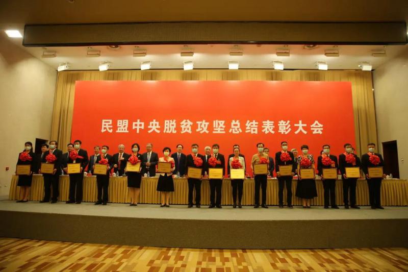 與會領(lǐng)導(dǎo)為獲得“民盟脫貧攻堅先進集體”稱號的代表頒獎