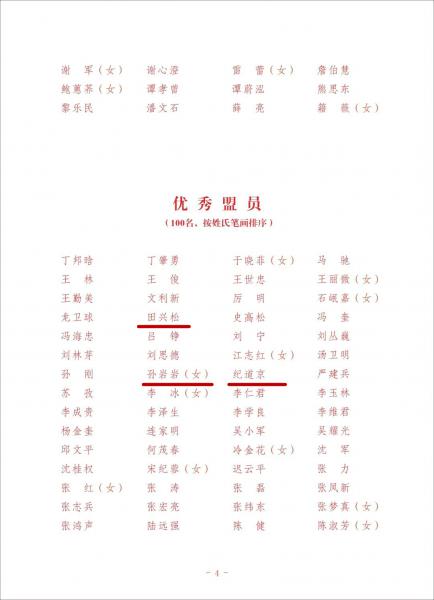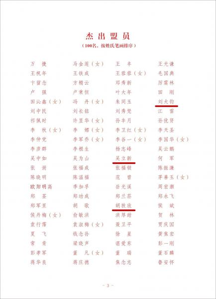 為表彰先進,弘揚優(yōu)良傳統(tǒng),激發(fā)廣大盟員干事創(chuàng)業(yè)的責(zé)任感使命感,匯聚不斷奮進的磅礴力量,民盟中央決定,授予民盟清華大學(xué)委員會等50個市級委員會和基層組織“先進集體”榮譽稱號,授予王文采等20名同志“榮譽老盟員”榮譽稱號、萬捷等100名同志“杰出盟員”榮譽稱號、丁邦晗等100名同志“優(yōu)秀盟員”榮譽稱號(名單附后)。希望被表彰的集體和個人,珍惜榮譽、發(fā)揚成績、開拓進取、再立新功。