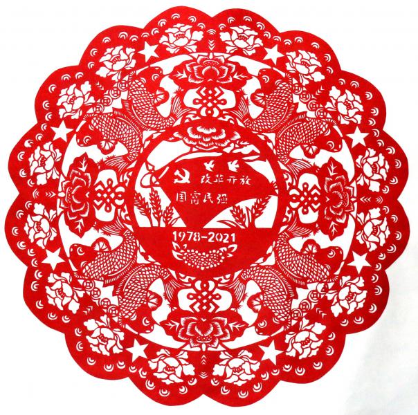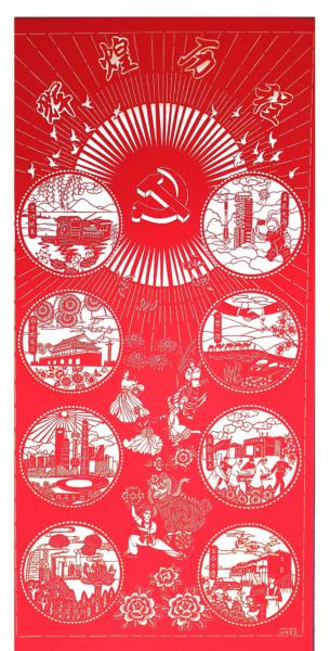 剪紙作品集《紙藝千秋》共100幅剪紙作品,分為人物、花鳥(niǎo)、場(chǎng)景、吉慶四大版塊,總長(zhǎng)60米,分別記載了共產(chǎn)黨誕生、新中國(guó)成立、改革開(kāi)放、港澳回歸、星辰大海、一帶一路、生命至上、全面小康等各個(gè)重要?dú)v史時(shí)期,集中展示了中國(guó)共產(chǎn)黨領(lǐng)導(dǎo)中國(guó)人民在革命、建設(shè)、改革和新時(shí)代各個(gè)歷史階段的典型人物和事件。