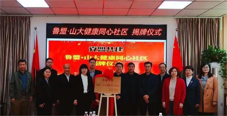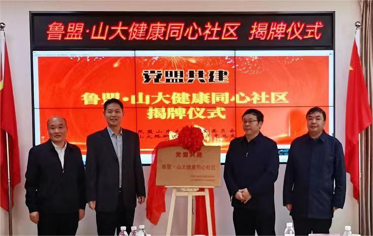 2022年10月27日,民盟山東大學(xué)委員會與中共山大社區(qū)黨總支舉行“黨盟共建 魯盟·山大健康同心社區(qū)”揭牌儀式活動。民盟省委會秘書長、參政議政部部長劉加釗、民盟省委會常委、山東大學(xué)委員會主委李輝、民盟省委會參政議政部副部長徐濟生,歷城區(qū)政協(xié)副主席張傳淼、山大路街道黨工委書記冀慎軍、山大路街道黨工委副書記張貫超、山大路街道社會事務(wù)辦公室副主任徐曉航等人出席儀式。