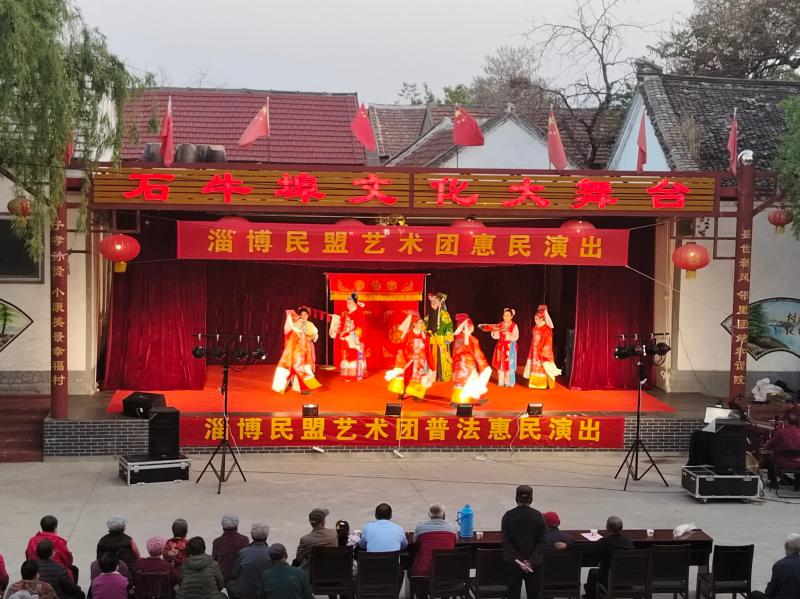 淄博民盟惠民演出是民盟淄博市委會為貫徹落實市委市政府“三提三爭”活動要求,打造淄博民盟“同心興淄”工作品牌,著力開展的“雙百行動”(淄博民盟醫(yī)療隊、民盟藝術(shù)團(tuán)用兩年時間各舉辦百場義診和普法惠民演出)其中一項。普法惠民演出是用大家喜聞樂見的戲曲,將群眾聚集起來,民盟法律專委會開展形式多樣的普法宣傳,民盟藝術(shù)團(tuán)聯(lián)合市演藝中心、各民間藝術(shù)團(tuán)等為大家送上豐富多彩的文藝節(jié)目,將普法與文化惠民有機(jī)結(jié)合起來,讓更多的人民群眾享有更加充實、更為豐富、更高質(zhì)量的精神文化生活,滿足人民群眾對美好文化生活的獲得感和幸福感。