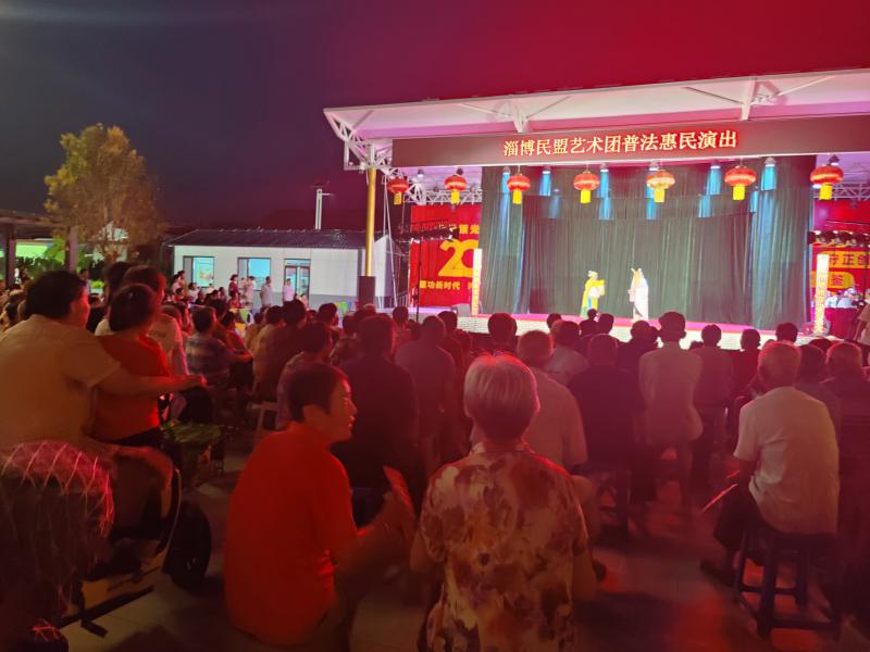 7月22日晚,淄博民盟藝術(shù)團和法律服務(wù)隊到桓臺縣荊家鎮(zhèn)周董村開展普法公益活動。民盟淄博市委會主委、市政協(xié)港澳臺僑和外事委主任李玲,民盟淄博市委會秘書長高清,景家鎮(zhèn)黨委書記秦永濤,民盟桓臺縣基層委主委龐月明,淄博民盟藝術(shù)團團長、淄博五音劇院原院長霍俊萍等參加。