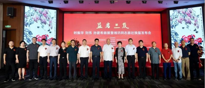 7月29日,“益者三友——時(shí)振華、劉偉、孫建希畫(huà)展暨濰坊同志畫(huà)社換屆發(fā)布會(huì)”在同志畫(huà)社美術(shù)館舉辦。此次活動(dòng)由中共濰坊市委宣傳部、民盟濰坊市委會(huì)、濰坊市文化和旅游局、濰坊市文學(xué)藝術(shù)界聯(lián)合會(huì)主辦,濰坊同志畫(huà)社承辦。市人大常委會(huì)副主任、民盟濰坊市委會(huì)主委毛秀鳳出席活動(dòng)并宣布畫(huà)展開(kāi)展,民盟濰坊市委會(huì)副主委張敬軍參加活動(dòng),民盟濰坊市委會(huì)委員武曉燕主持活動(dòng)。民盟盟員、山東明聯(lián)控股集團(tuán)有限公司董事長(zhǎng)丁峰當(dāng)選濰坊同志畫(huà)社新任社長(zhǎng)。