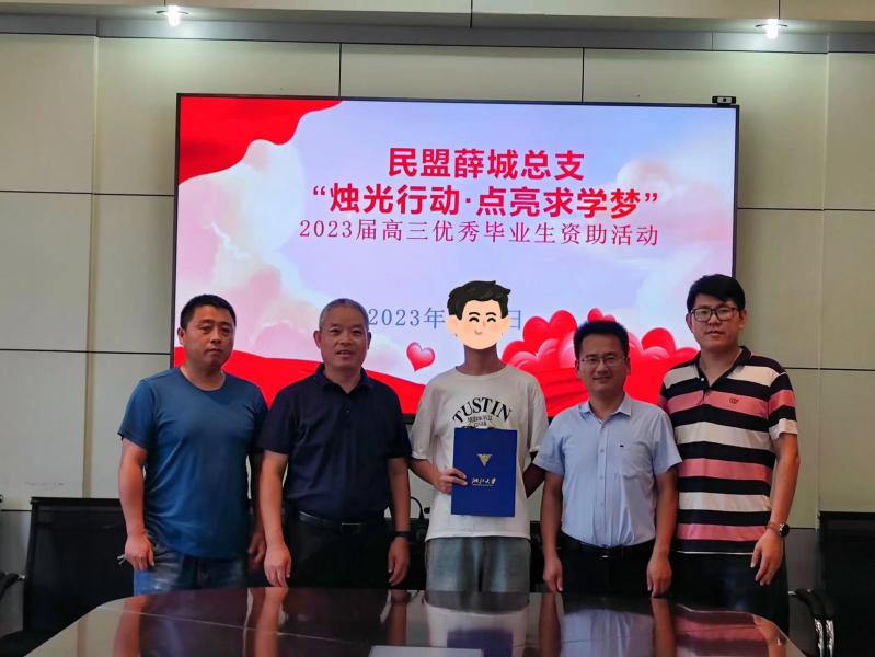8月5日,民盟棗莊市薛城區(qū)總支開(kāi)展“燭光行動(dòng)·點(diǎn)亮求學(xué)夢(mèng)”——2023屆高三優(yōu)秀畢業(yè)生資助活動(dòng)。民盟棗莊市委會(huì)副主委、薛城區(qū)總支主委孫允寶和總支部分盟員參加。