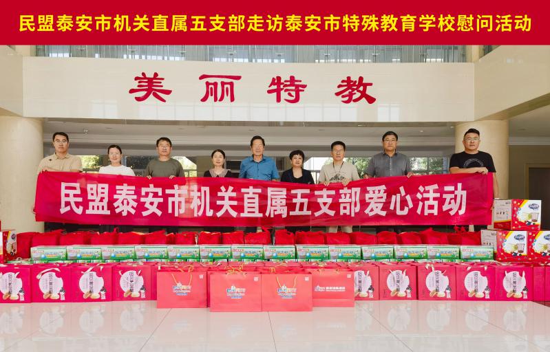 9月15日,民盟泰安市機(jī)關(guān)直屬五支部在民盟泰安市委會(huì)秘書長徐建英和支部主委邱延平帶領(lǐng)下,來到泰安市特殊教育學(xué)校走訪看望學(xué)校的老師和孩子們,為學(xué)校送去節(jié)日祝福和生活及文體用品,奉獻(xiàn)一份愛心。特教學(xué)院院長高理敬、副院長褚文靜陪同參加活動(dòng)。