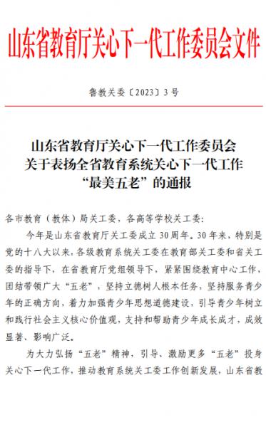 近日,省教育廳關(guān)心下一代工作委員會(huì)下發(fā)《關(guān)于表揚(yáng)全省教育系統(tǒng)關(guān)心下一代工作“最美五老”的通報(bào)》,新泰市民盟盟員王玉民獲評(píng)“最美五老”稱號(hào)。