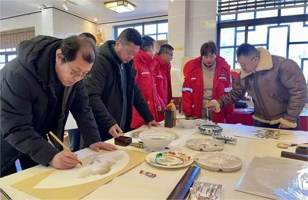 筆筆嘉畫,春意濃,農(nóng)歷龍年即將來臨。2024年1月22日,為進(jìn)一步文化賦能、共建交流,民盟泰安書畫藝術(shù)支部的書畫家們?cè)?/span>支部主委賈榮強(qiáng)帶領(lǐng)下來到中天門管理區(qū)開展“潑墨迎新,妙筆生花”筆會(huì)活動(dòng)。書畫家現(xiàn)場(chǎng)將濃濃的情意融入一幅幅書畫作品當(dāng)中,為在嚴(yán)寒時(shí)期堅(jiān)守工作崗位的景區(qū)管理人員、消防工作人員、經(jīng)營(yíng)業(yè)戶及游客送上“文化大餐”和新春的祝福。