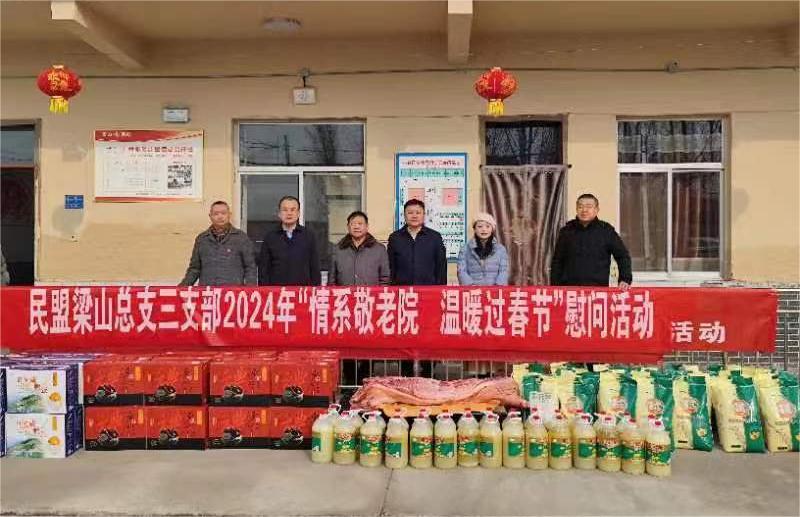 2月6日,民盟梁山總支第三支部主委、水泊梁山食品有限公司總經(jīng)理王成允帶領(lǐng)部分盟員先后到小路口鎮(zhèn)敬老院、館驛鎮(zhèn)敬老院開展新春慰問活動,為老人們送上豬肉、面粉、大米、食用油、咸鴨蛋、松花蛋、食用菌等價值近三萬元的慰問品和新春祝福,并送上慰問金,讓孤寡老人們感受到來自黨和民盟的愛心與溫暖?h委統(tǒng)戰(zhàn)部副部長張洪濤,民主黨派科科員李倩出席活動。小路口鎮(zhèn)、館驛鎮(zhèn)相關(guān)負責同志、兩處敬老院院長參加活動。
