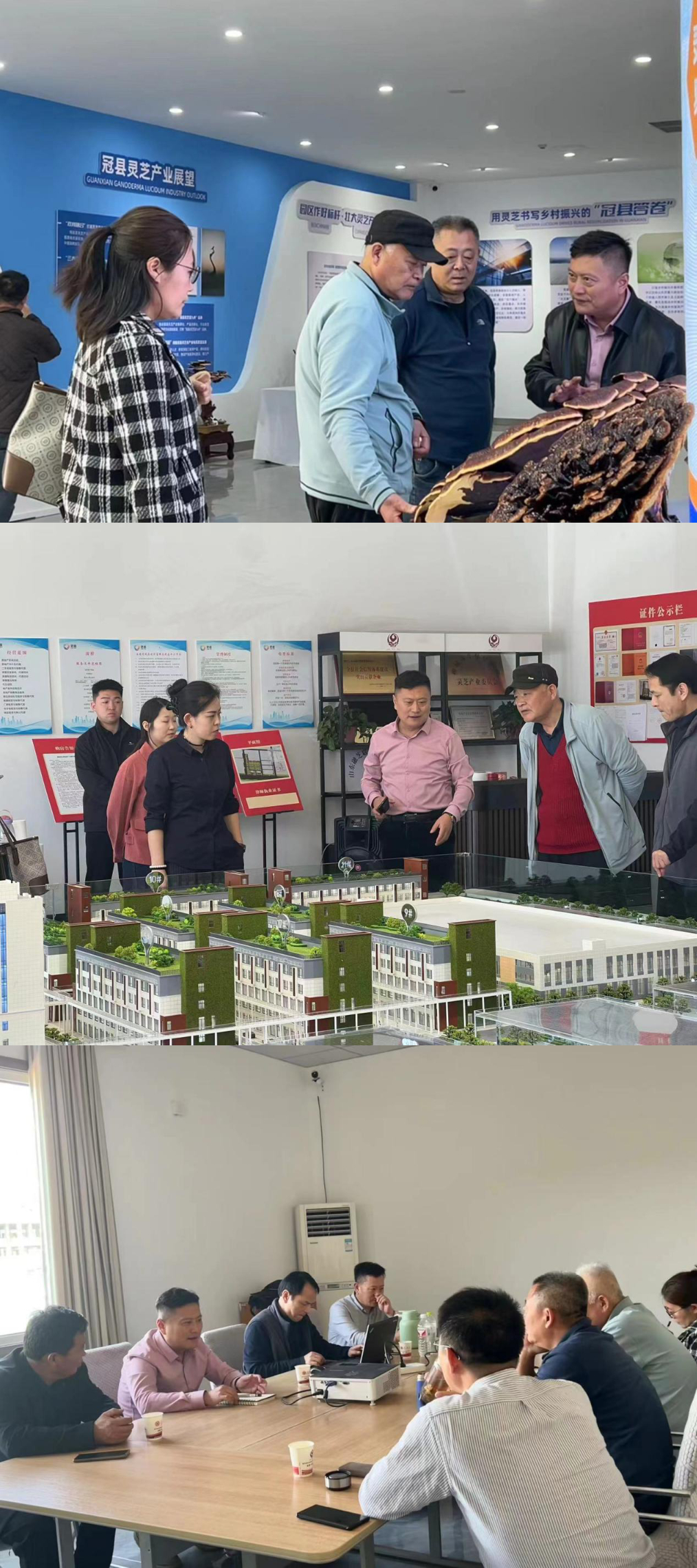 3月30日,山東商協會發(fā)展委員會秘書長于建軍、中國孔子基金會新時代儒商專項基金創(chuàng)始人劉登峯、蒲提投資合伙人董林平、濟南市中小企業(yè)聯合會秘書長張國坤等到臨冠縣店子鎮(zhèn)融芝聯靈芝大健康商品交易中心考察。