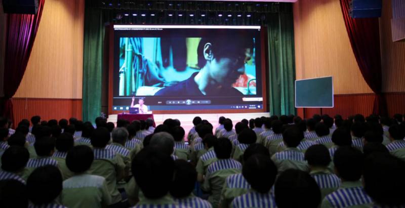 講座分為三個部分,分別是百年影像發(fā)展史、視聽語言解析和影視拉片。講座最后劉立森指出“電影的一個重要主題是和解,是放下,是與自己的過去握手言和,同時獲得新生”,讓服刑人員深受觸動,受到歷山監(jiān)獄領(lǐng)導(dǎo)的一致好評。