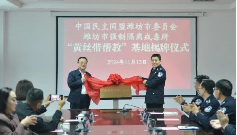 為積極響應(yīng)民盟中央與司法部聯(lián)合發(fā)起的“黃絲帶幫教”行動,11月13日,民盟濰坊市委會在濰坊市強制隔離戒毒所舉行“黃絲帶幫教”基地揭牌儀式。這是繼濰坊監(jiān)獄、濰北監(jiān)獄之后的第三個“黃絲帶幫教”基地。民盟濰坊市委會副主委張國慶,濰坊市戒毒所黨委書記、所長郭紅軍出席儀式并共同為基地揭牌。