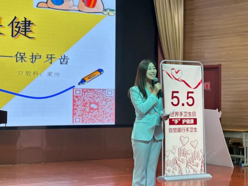 民盟日照企業(yè)家聯(lián)誼會副秘書長、嵐山區(qū)支部組織委員單琦為同學們演示“七步洗手法”,手把手指導孩子們邊念口訣邊練習,現(xiàn)場氣氛熱烈,孩子們學得有模有樣。嵐山區(qū)婦幼保健院口腔科主任梁帥以生動易懂的語言,為同學們帶來了《口腔保健》《手衛(wèi)生宣傳》兩堂實用健康課。盟員們帶領(lǐng)同學們歌唱專為活動創(chuàng)作的《手衛(wèi)生歌》,該歌曲由盟員藍潔和成魯山精心創(chuàng)作,將洗手步驟融入歌詞,讓孩子們在歌聲里牢記健康知識。
