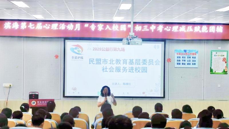5月22日,民盟青島市北區(qū)教育基層委員會走進青島44中和青島大學(xué)附屬濱海學(xué)校開展社會服務(wù)公益行動,為初三畢業(yè)生帶來了兩場精準(zhǔn)及時的考前減壓心理輔導(dǎo)講座。