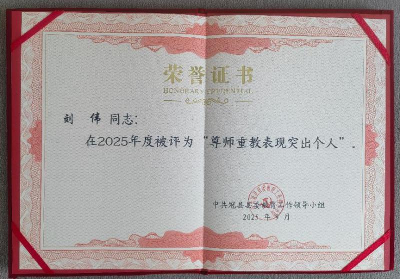 盟員劉偉榮獲“尊師重教表現(xiàn)突出個(gè)人”表彰