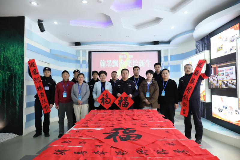 活動(dòng)現(xiàn)場(chǎng)墨香縈繞,溫情涌動(dòng)。盟內(nèi)書畫界人士揮毫潑墨、傾情指導(dǎo),圍繞春聯(lián)對(duì)仗格律、福字書寫筆法等方面進(jìn)行細(xì)致講解,耐心指導(dǎo)參與人員書寫春聯(lián)、創(chuàng)作福字。大家凝神運(yùn)筆、用心落墨,方寸間流淌出對(duì)新春的期盼與祝福。一幅幅寓意吉祥的春聯(lián)、一個(gè)個(gè)飽滿喜慶的福字,既傳遞著傳統(tǒng)節(jié)日的文化溫度,也寄托著對(duì)幫教對(duì)象重塑自我、開啟新程的深情祝愿。