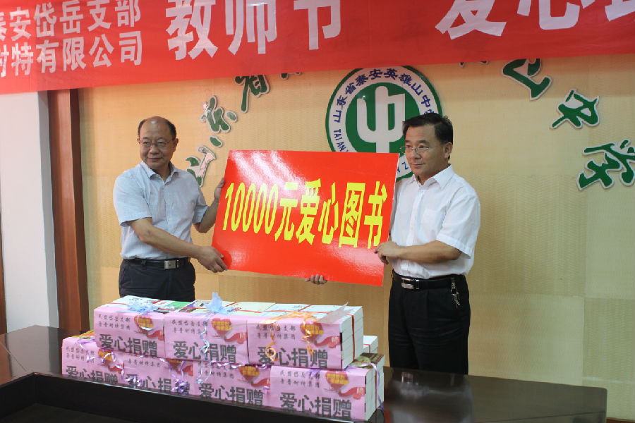 此次的“愛(ài)心書(shū)櫥”共為英雄山中學(xué)畢業(yè)班的學(xué)生贈(zèng)送了價(jià)值10000元愛(ài)心圖書(shū)和2000元的書(shū)櫥,向老師和學(xué)生奉獻(xiàn)出了一片濃濃的愛(ài)心。孫岱峰指出,民盟泰安岱岳區(qū)支部和魯普耐特公司聯(lián)合舉辦的活動(dòng)弘揚(yáng)了泰安民盟尊師重教的良好風(fēng)尚,捐建的“愛(ài)心書(shū)櫥”是泰安民盟“愛(ài)心書(shū)櫥”的首家,意義重大;同時(shí),他希望英雄山中學(xué)廣大學(xué)生們能以此為動(dòng)力,刻苦學(xué)習(xí),為實(shí)現(xiàn)中華民族偉大復(fù)興的中國(guó)夢(mèng)而努力奮斗。