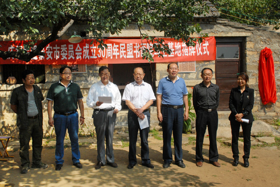 9月15日,民盟泰安市委舉行泰安民盟書畫院寫生基地揭牌儀式,慶祝民盟泰安市委員會成立30周年。中共泰安市委統(tǒng)戰(zhàn)部副部長薛其福,民盟泰安市委副主委、市中級人民法院副院長孫岱峰共同為基地揭牌。民盟泰安市委副主委、山東農(nóng)業(yè)大學(xué)研究生處處長張春慶主持儀式。民盟泰安市委秘書長徐建英等參加活動。