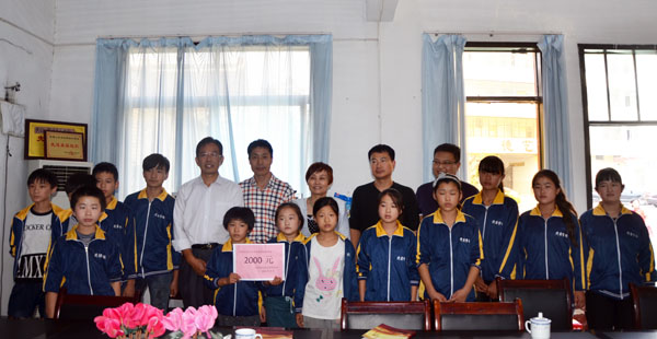 9月16日,在中秋節(jié)來(lái)臨之際,民盟菏澤市委副主委王翠平、羅盼生和盟內(nèi)企業(yè)家代表愛心盟員來(lái)到菏澤熒星文化學(xué)?赐繂(wèn)“孤困班”學(xué)生,親切詢問(wèn)他們的學(xué)習(xí)生活情況。從“菏澤盟員扶貧教育基金”中拿出2000元作為助學(xué)金捐贈(zèng)給20名貧困兒童,并為孩子們發(fā)放了月餅、蘋果等節(jié)日慰問(wèn)品。